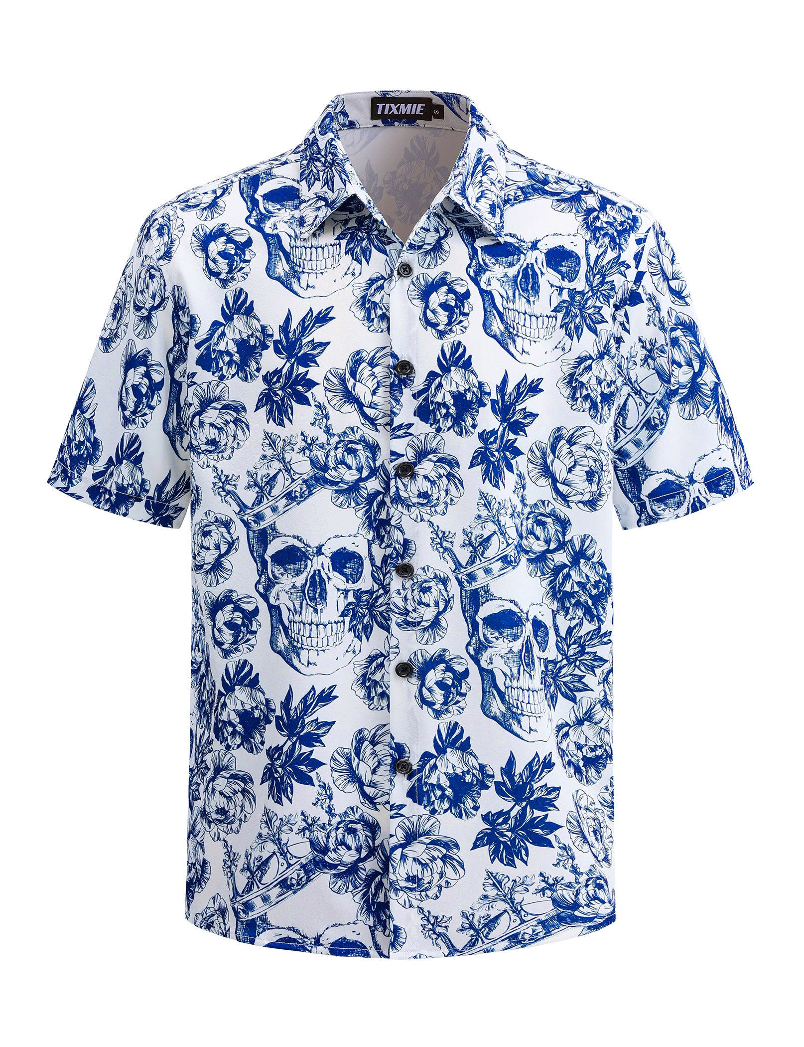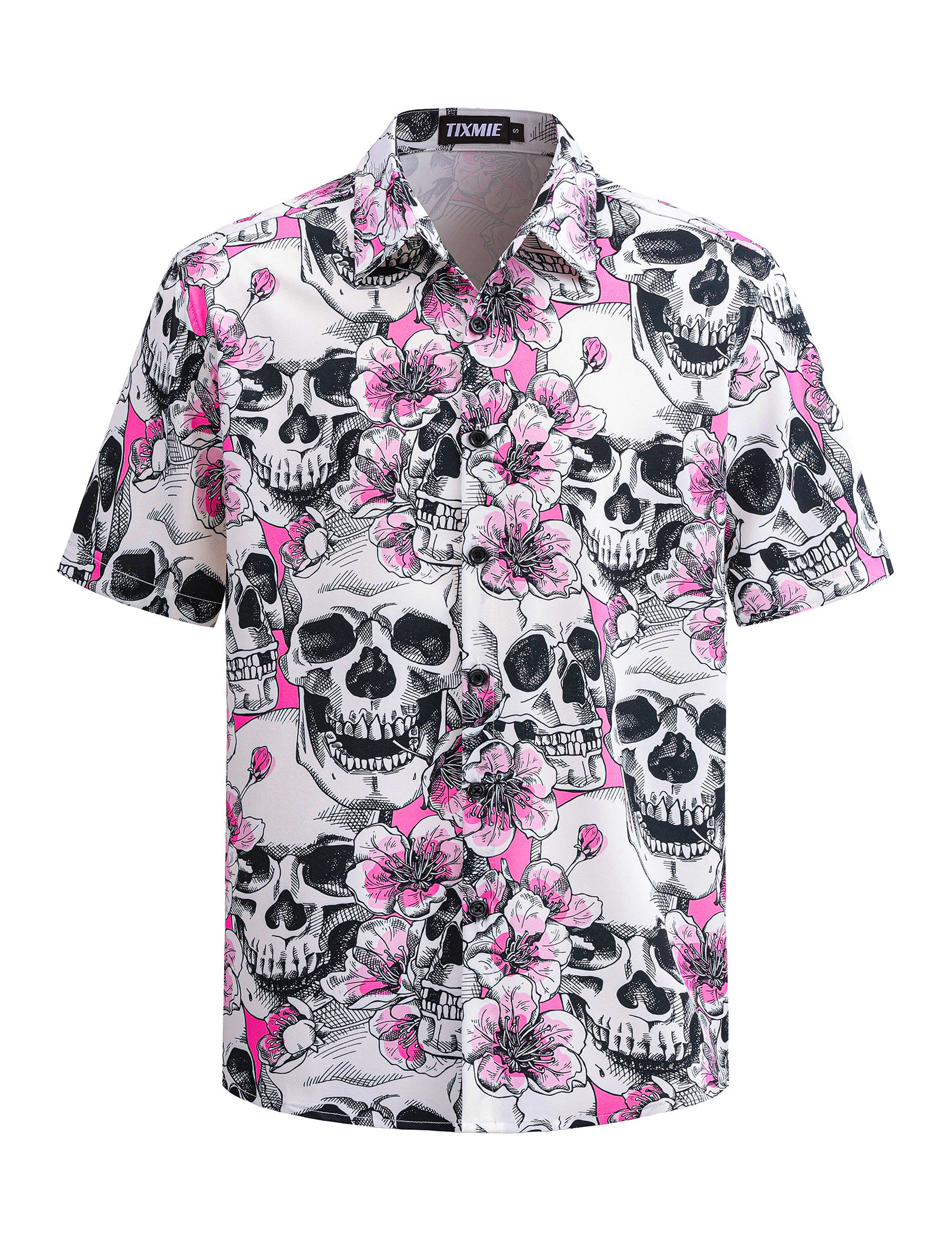 Funny Hawaiian Shirt for Men - Skull Floral Short Sleeve Button Down Shirts, Punk Rock Casual Shirt for Summer
